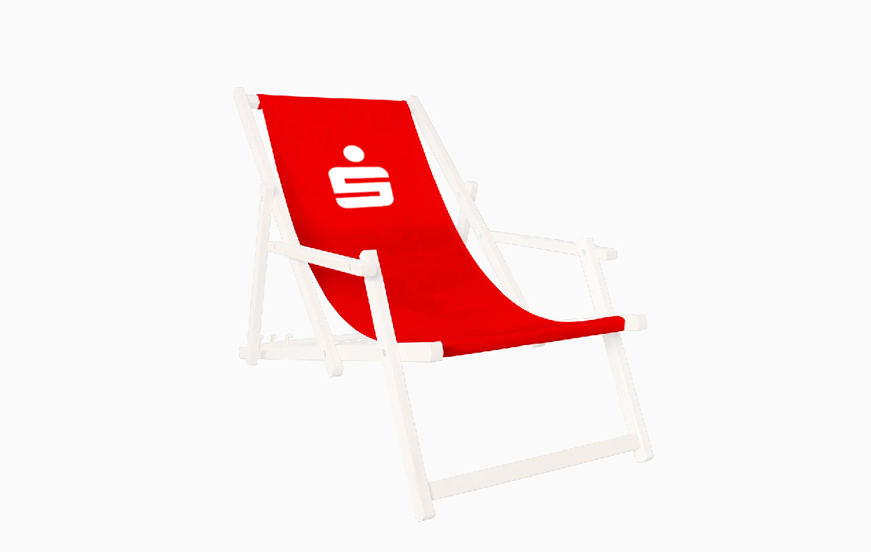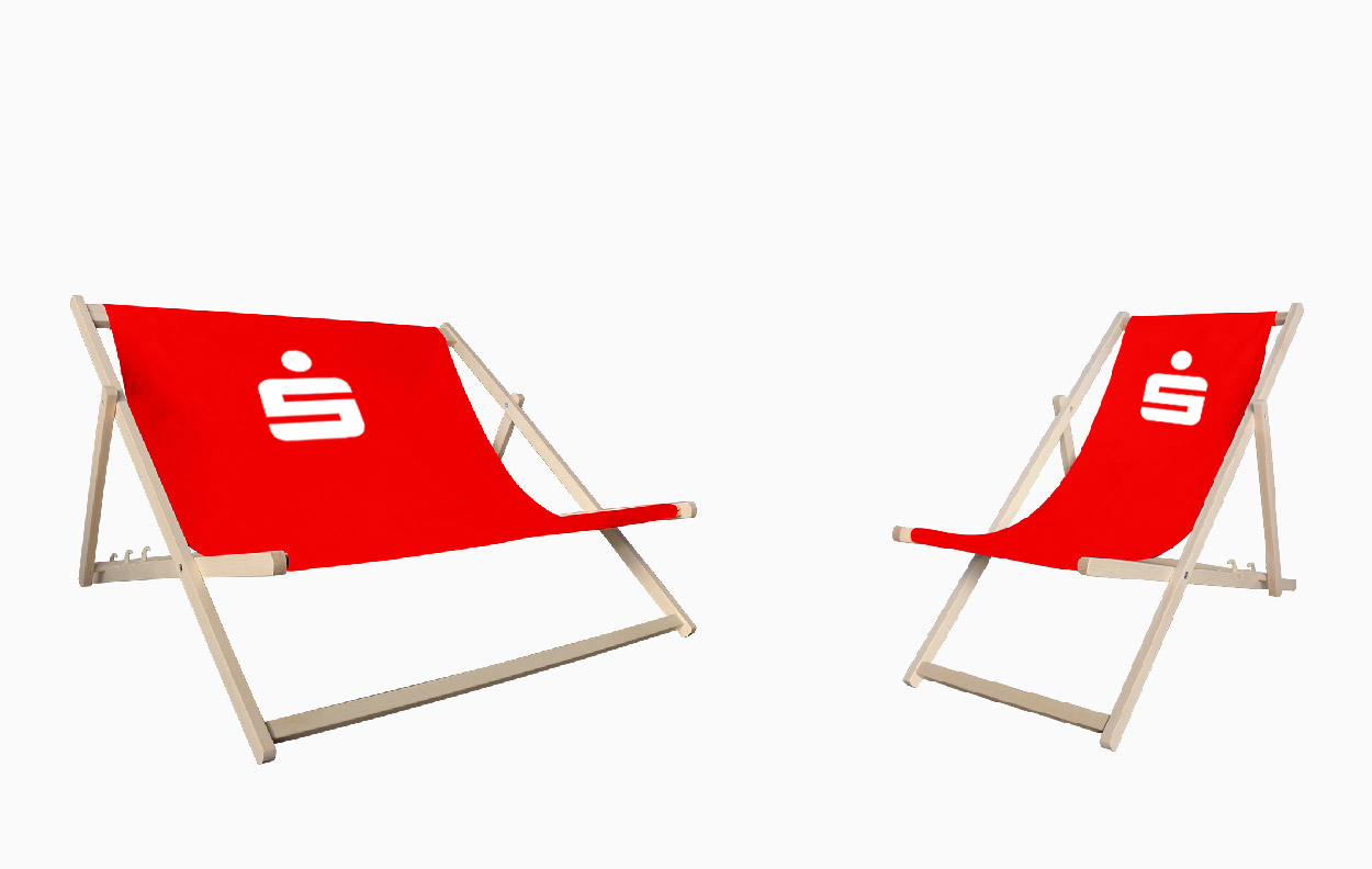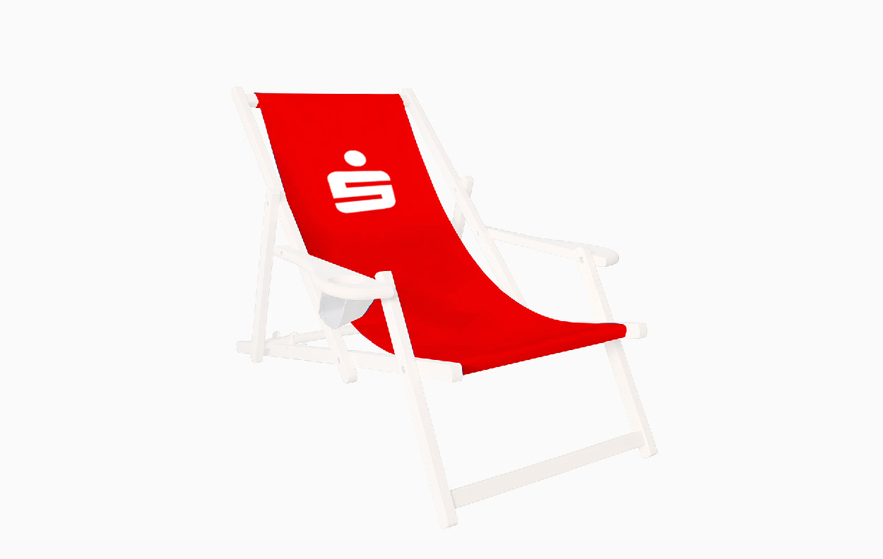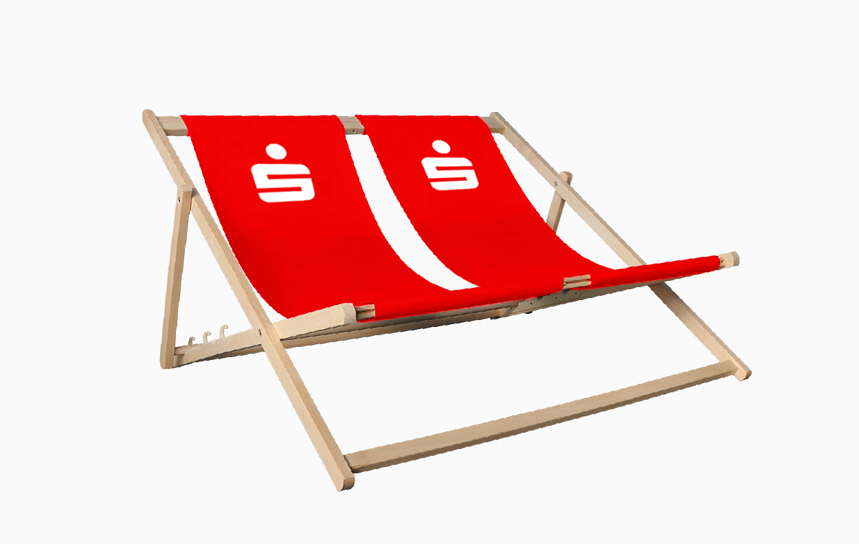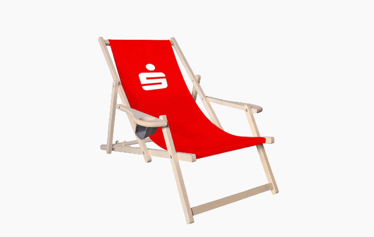 Liegestühle sind mehr als nur eine entspannte Sitzgelegenheit. Als individuell bedruckte Werbeträger machen sie besonders in Biergärten, Strandbars, Hotels und Schwimmbädern, aber auch auf Messen und Outdoor-Events eine gute Figur. Erzeugen Sie eine sommerliche Strandatmosphäre auf Ihrer Veranstaltung und begeistern Sie Ihre Kunden zum Beispiel mit dem Getränkehalter oder unserer Doppelliege!