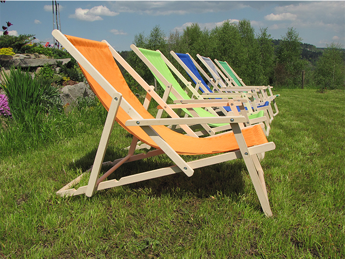 Das hochwertige Gestell aus robustem Buchenholz ist wetterfest und kann dank der stabilen Sicherungsbügel stufenweise höhenverstellt werden. Der erstklassige Polyesterstoff hat eine Tragfähigkeit bis 110kg (bzw. 160kg bei der Doppelliege) und kann beispielsweise mit Ihrem Logo, einem Werbeslogan oder einem vollflächigen Muster bedruckt werden. Der Liegestuhl ist sowohl in der klassischen Variante erhältlich, als auch mit Armlehnen, Getränkehalter oder in der doppelten Ausführung mit zwei Sitzflächen.