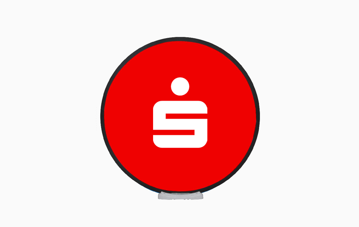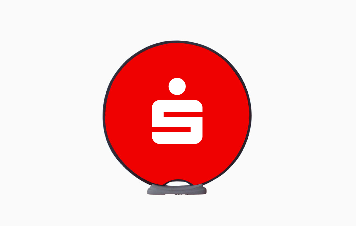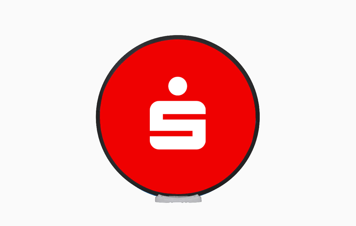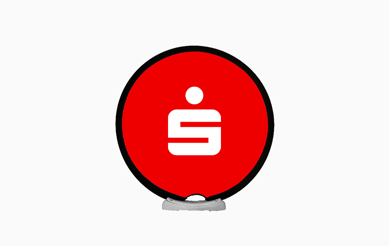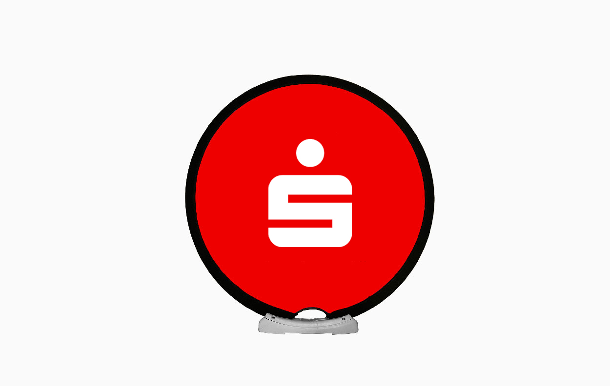 Die Easydisc Flex ist als doppelseitig bedrucktes rundes Werbedisplay ein besonderer Eyecatcher.
