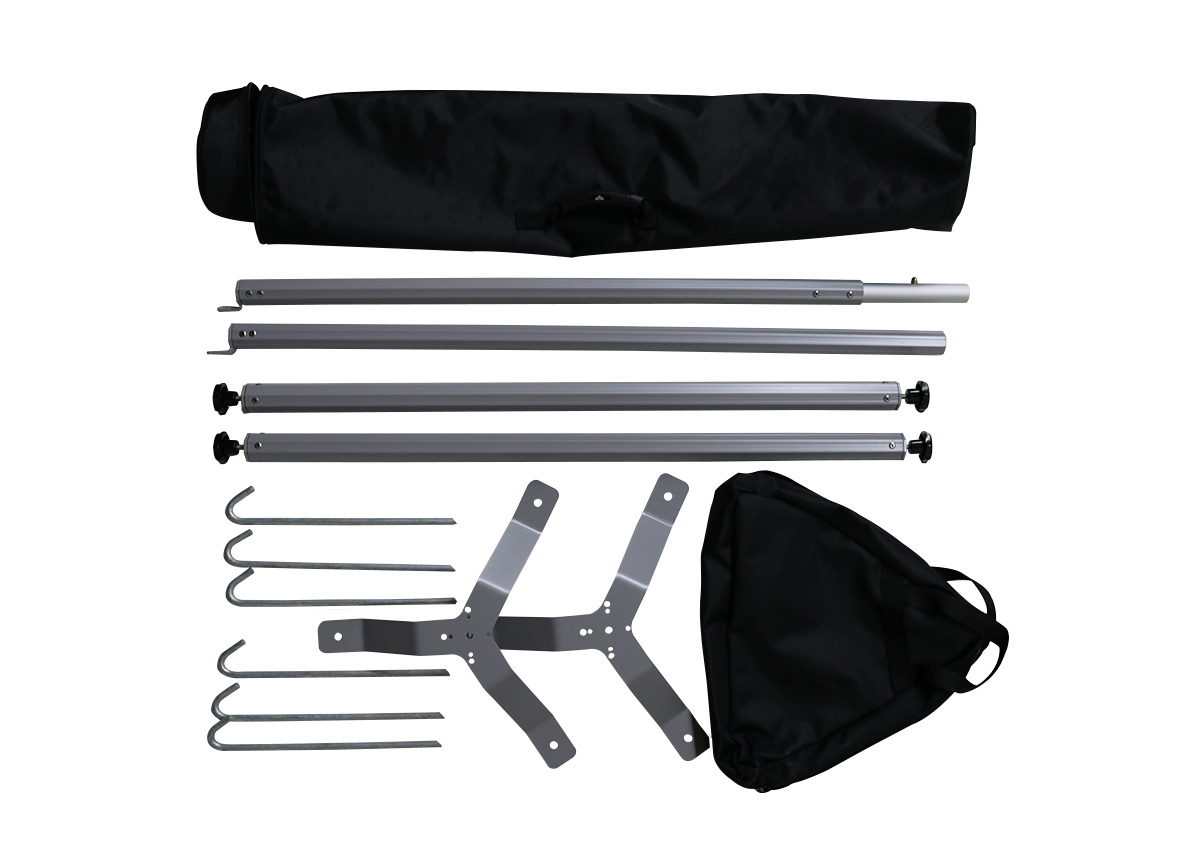 - Ösen und Erdheringe zur Befestigung