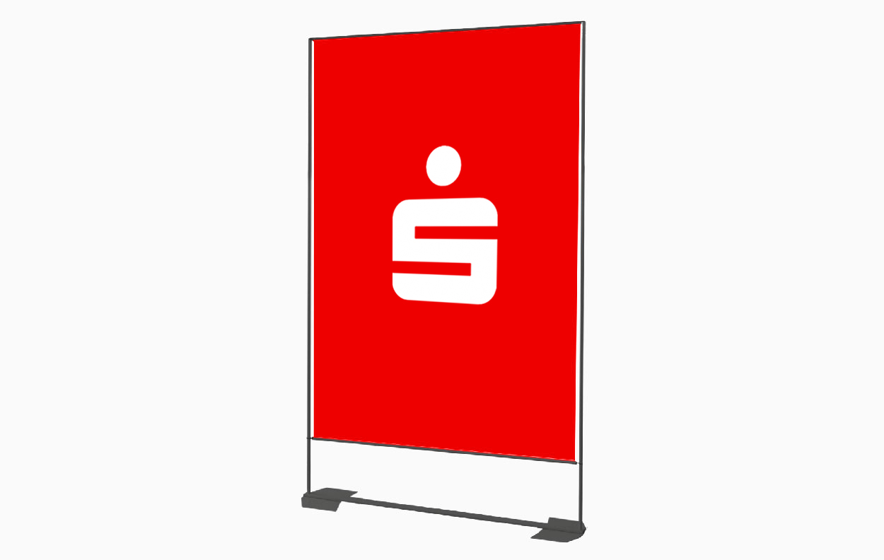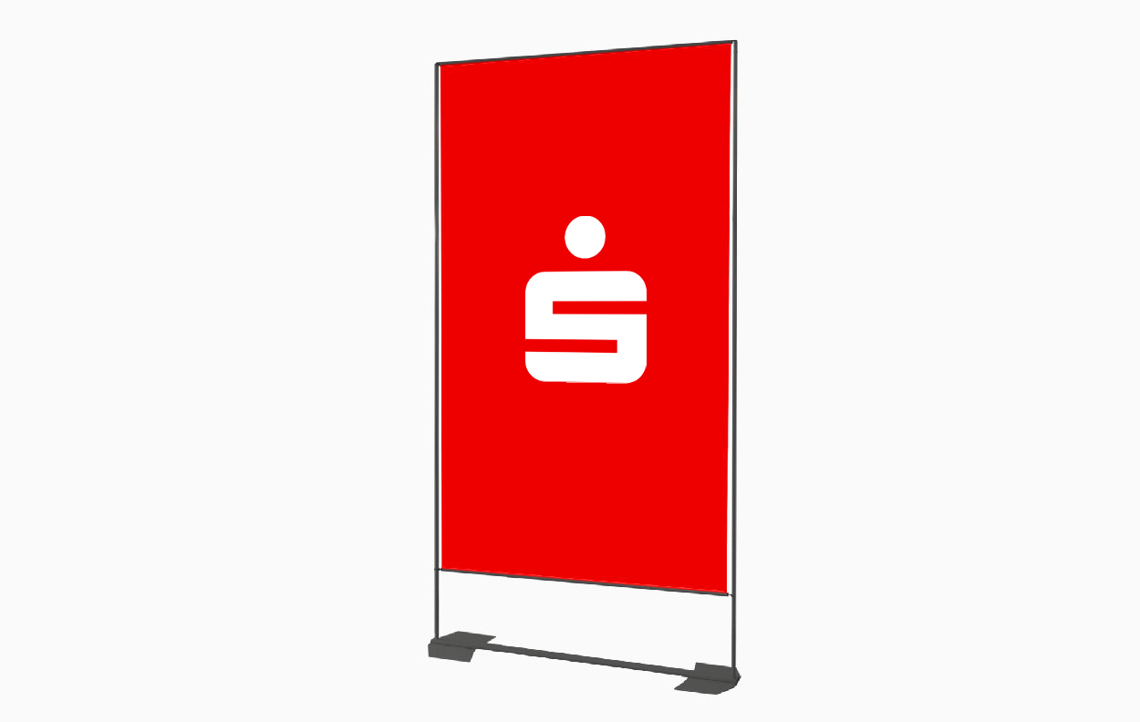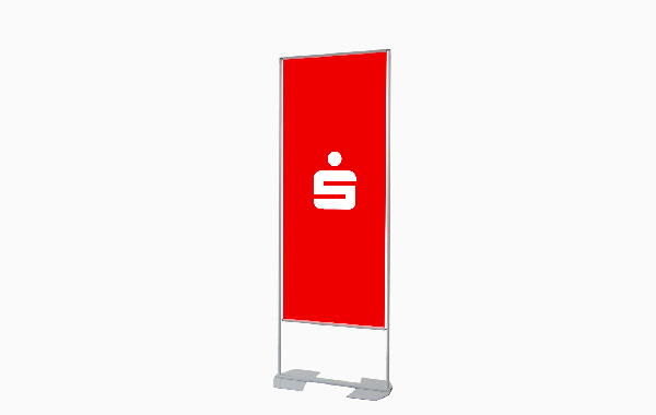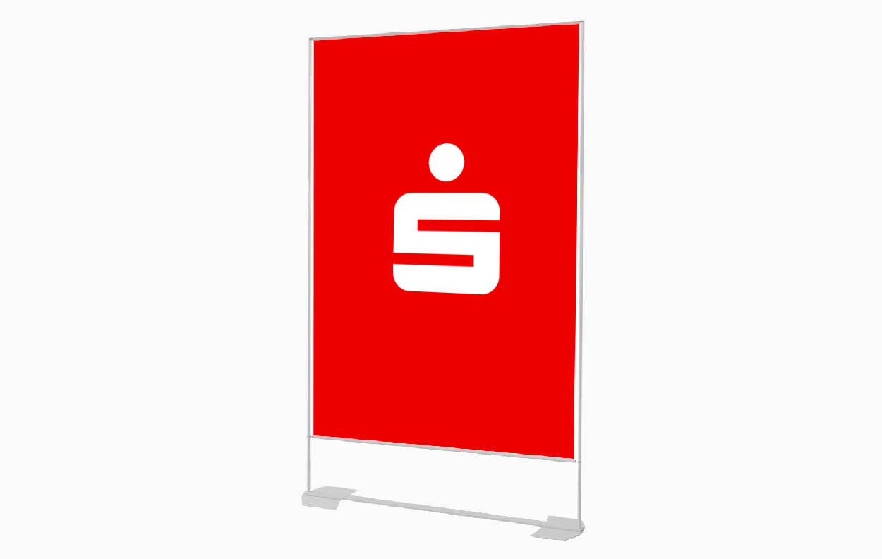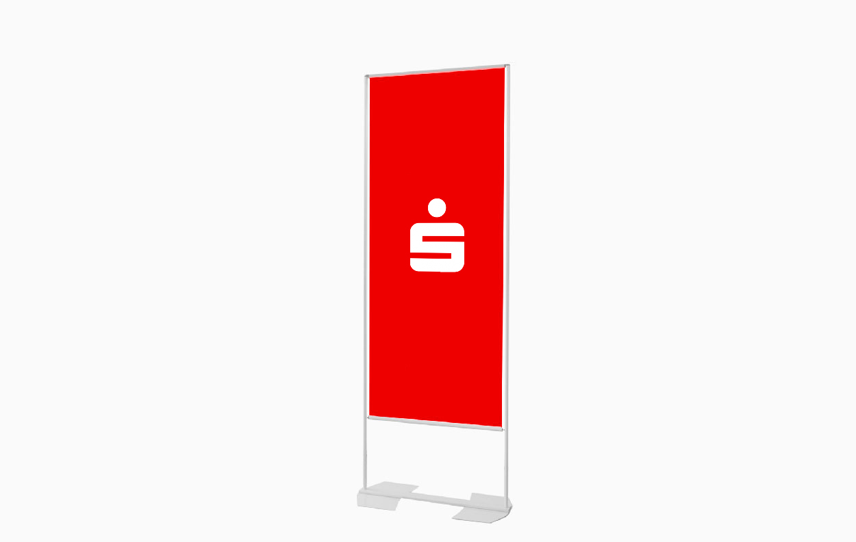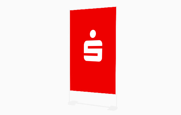 Doppelseitige Drucke sind der große Vorteil dieses Standdisplays! Da es immer gerade steht, sieht dieses Roll-up nämlich dann auch mitten im Raum perfekt und stilvoll aus!