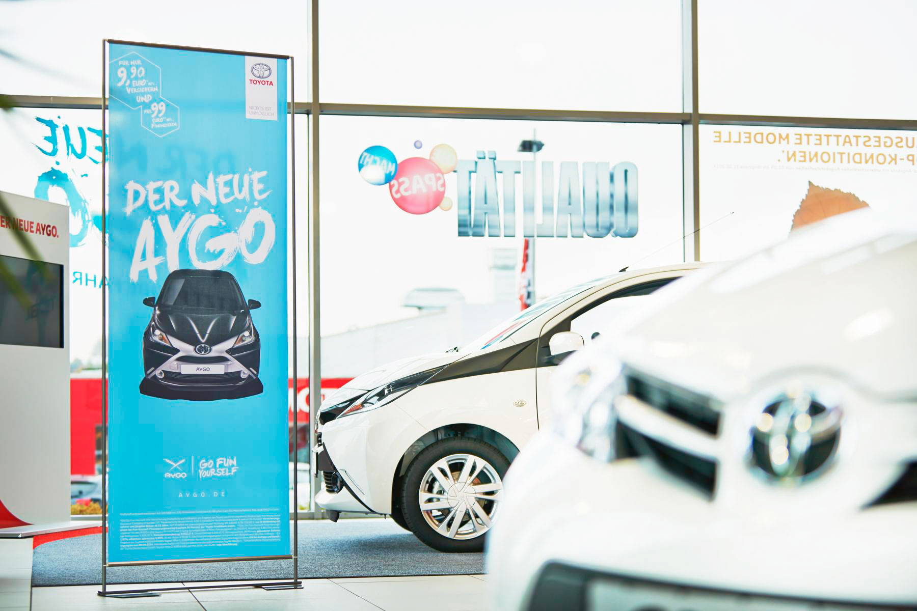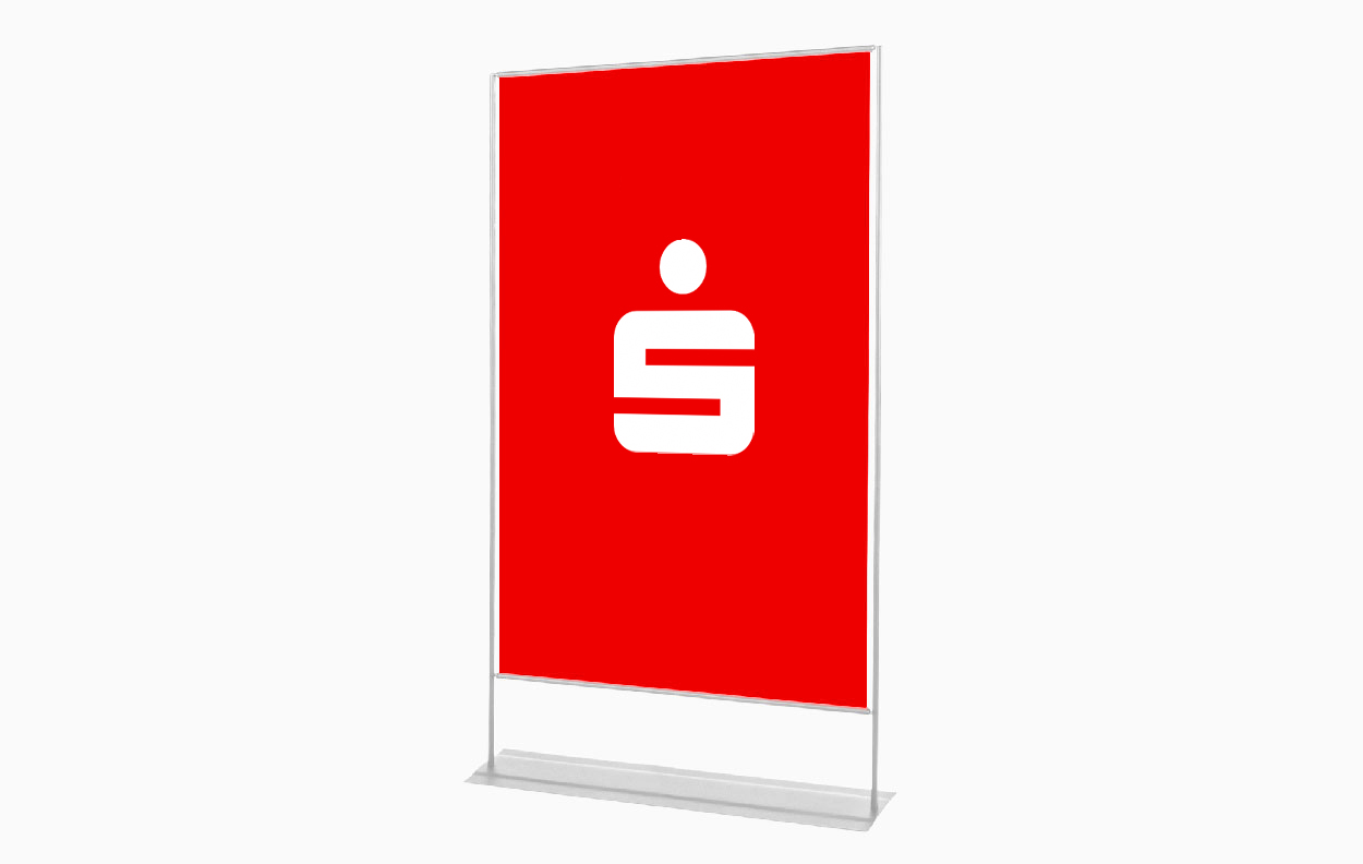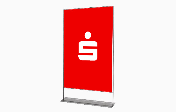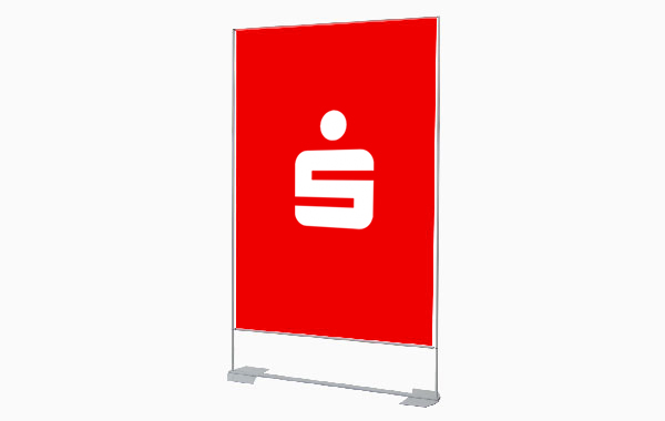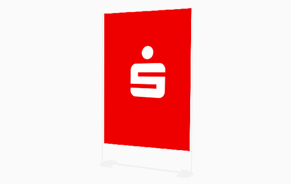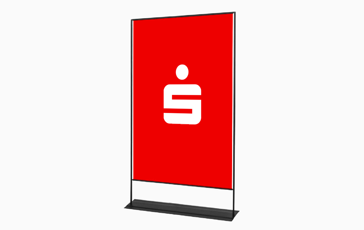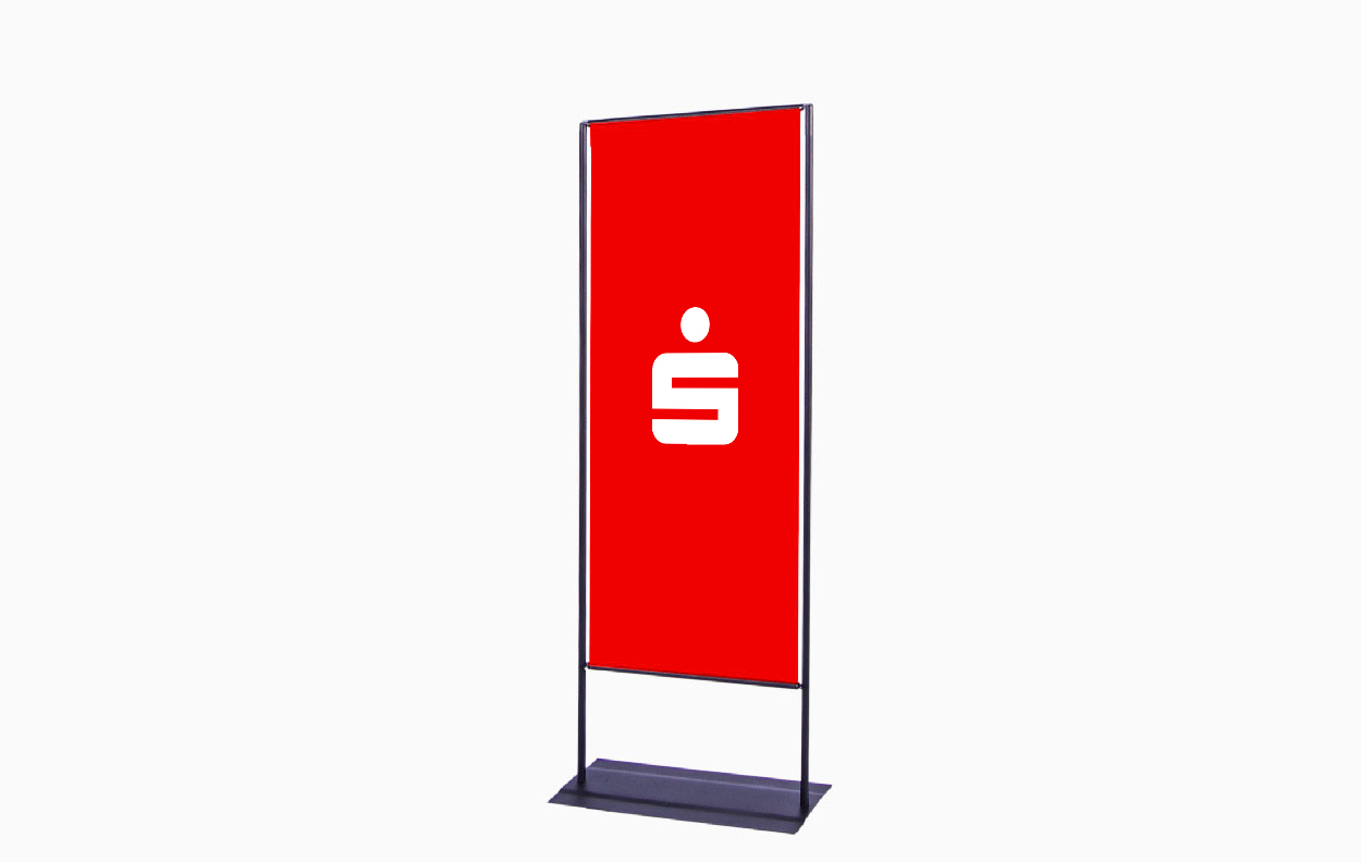 Doppelseitige Drucke sind der große Vorteil dieses Standdisplays! Da es immer gerade steht, sieht dieses Roll-up nämlich dann auch mitten im Raum perfekt und stilvoll aus!