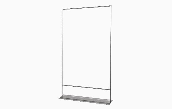 Das Easymag Stand steht immer gerade, sieht von allen Seiten elegant aus und ist leicht aufzubauen: Einfach die beiden Aluminium-Rohre (1) links und rechts ineinander- und dann auf der Bodenplatte (2) festschrauben. Die obere Querstange mit den innen liegenden Magneten wird mit filigranen Eckverbinden in Gestellfarbe (3) in das seitliche Gestänge eingesteckt. Damit erhält das Standdisplay seinen Rahmen. Die untere Querstange, die auch die kleinen Magnete enthält, wird mit kleinen Y-Haltern (4) links und rechts an das Gestänge geklemmt – stufenlos in der Höhe verstellbar! Das Easymag Stand gibt es in drei Standardfarben.