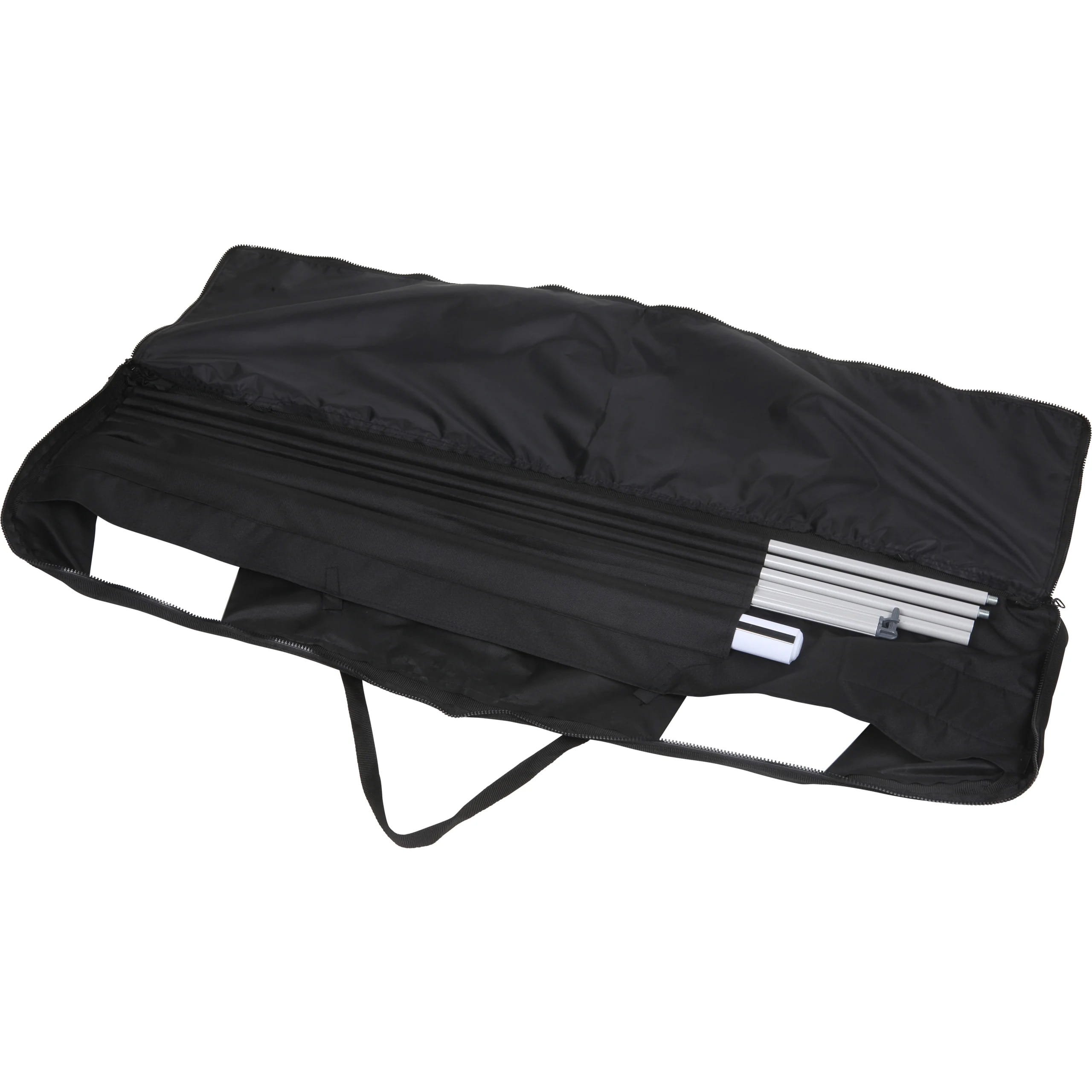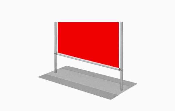 Das Easymag Stand Set besteht aus dem Easymag Gestell mit wählbarer Fußvariante und einem ein- oder doppelseitig bedruckten Stoffbanner mit geklemmten Metallleisten oben und unten. Die seitlichen Aluminium-Stangen sind zweiteilig und werden zum Aufbau ineinander und auf den Standfuß geschraubt. Die Querstange oben wird auf die Seitenstangen gesteckt und die Querstange unten hängt zur Beschwerung am Banner zwischen den Seitenstangen. In den Querstangen befinden sich Magnete, die den Easymag Banner halten.