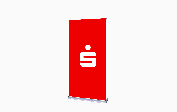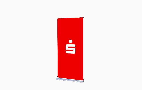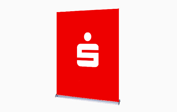 Auch in die obere Querstange wird die Grafik einfach per Keder eingeschoben. Als Roll-Up erhält sie formschöne Endkappen, die mit innenliegendem Gummizug vor Verlust gesichert sind. Als mobile Messewand, Sponsorenwand oder Pressewand genutzt, also mit einer durchgängigen Grafik durch beliebig viele Kassetten, werden die Endkappen einfach abgezogen.