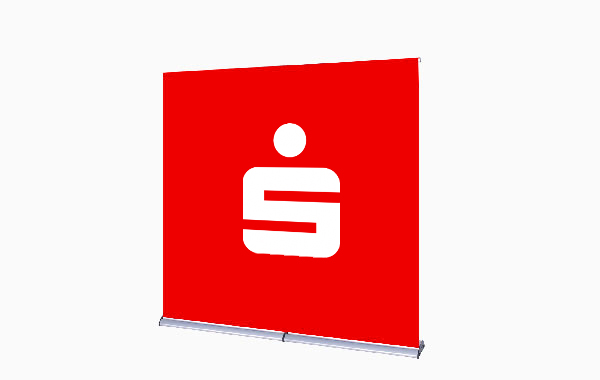 Auch in die obere Querstange wird die Grafik einfach per Keder eingeschoben. Als Roll-Up erhält sie formschöne Endkappen, die mit innenliegendem Gummizug vor Verlust gesichert sind. Als mobile Messewand, Sponsorenwand oder Pressewand genutzt, also mit einer durchgängigen Grafik durch beliebig viele Kassetten, werden die Endkappen einfach abgezogen.