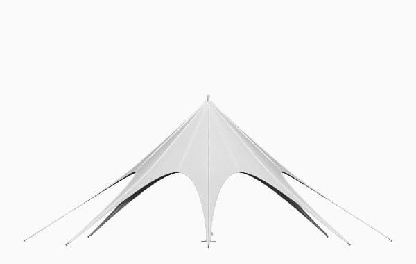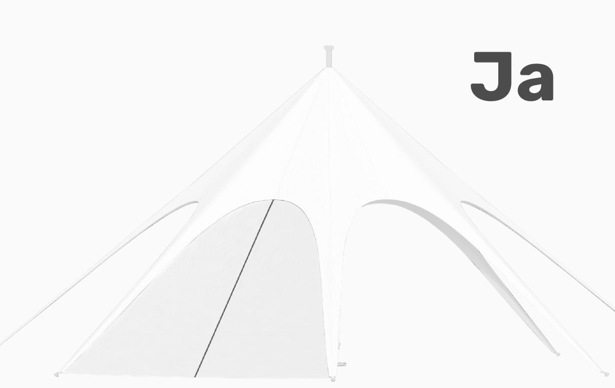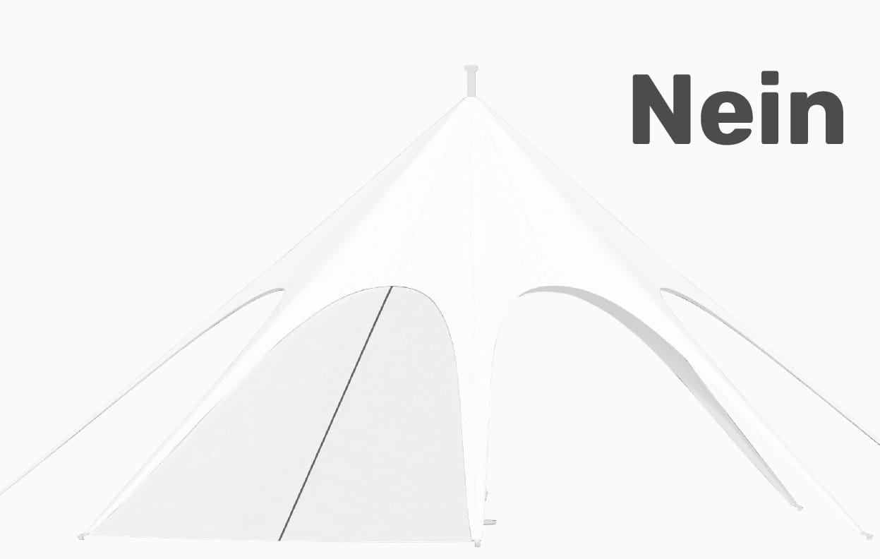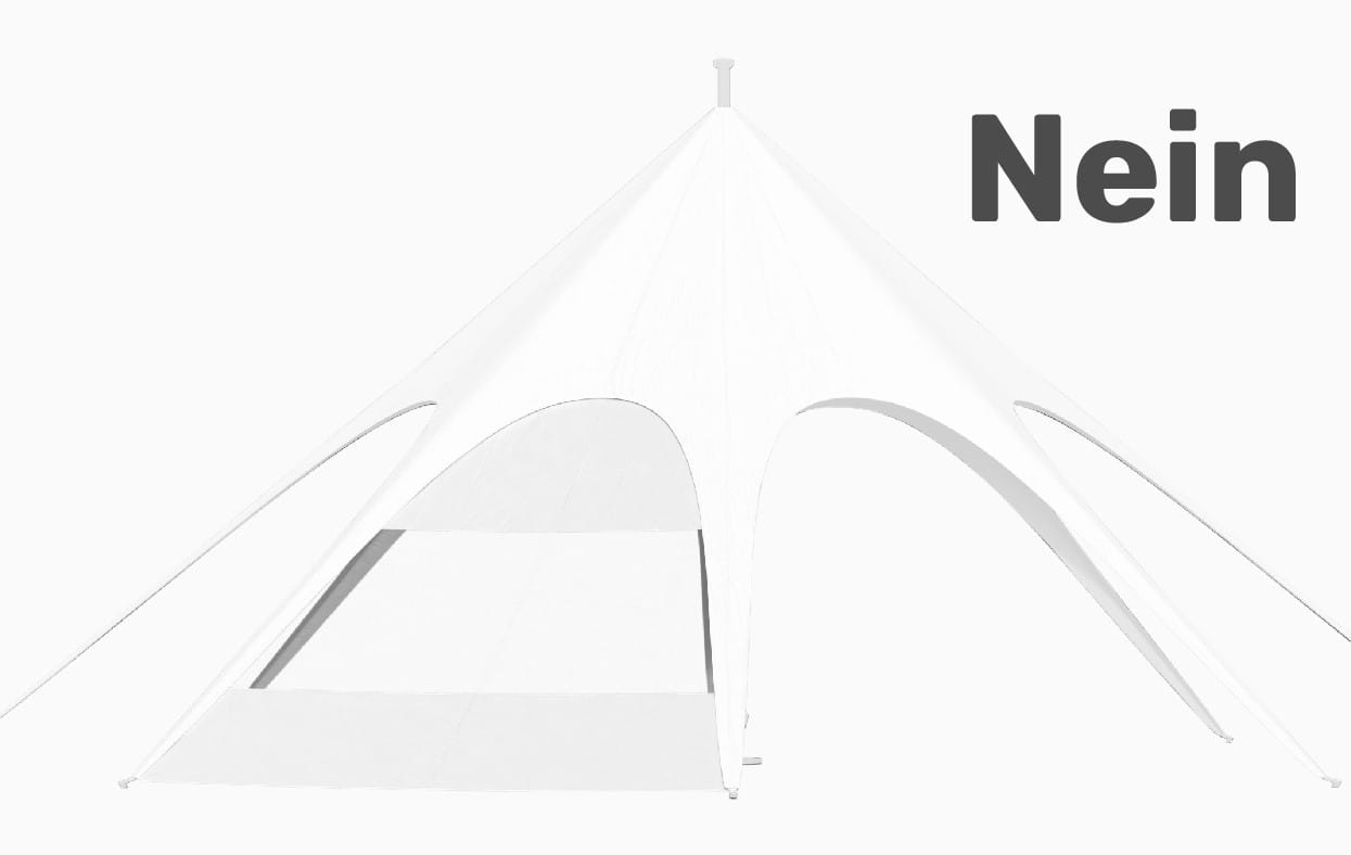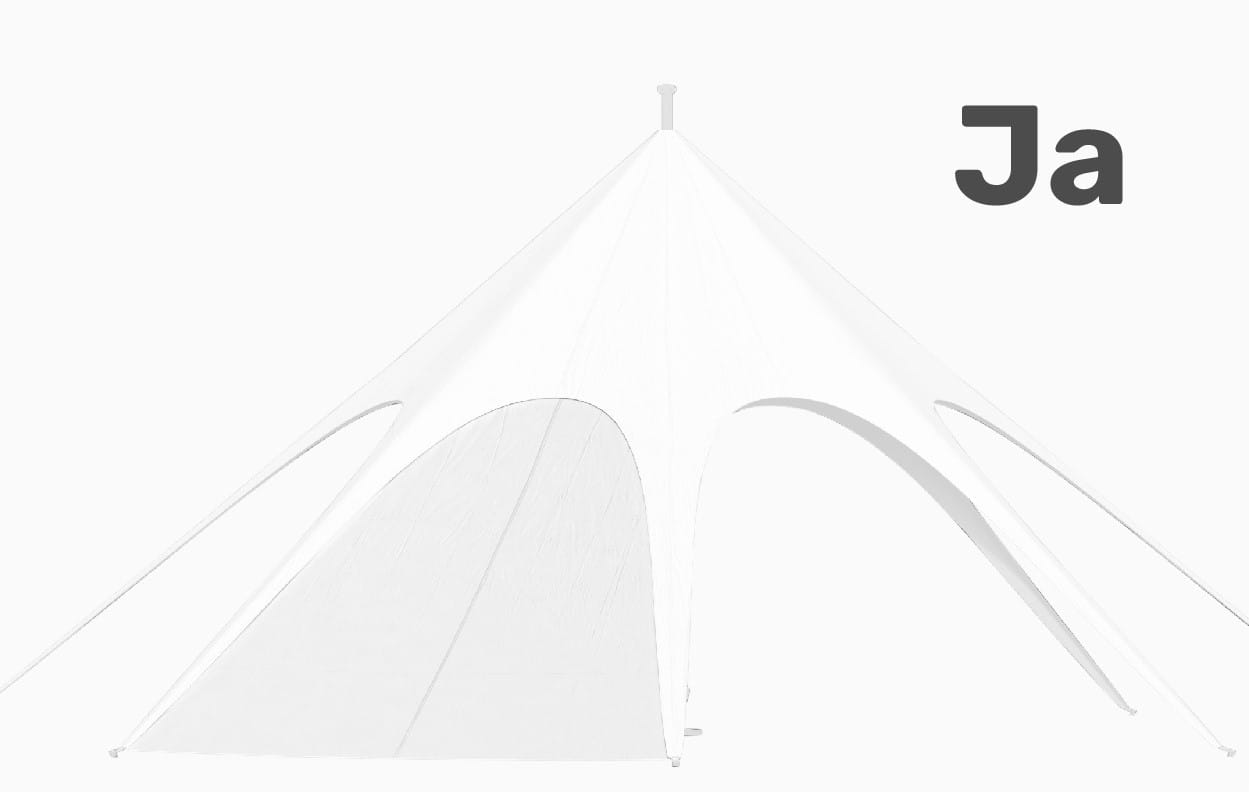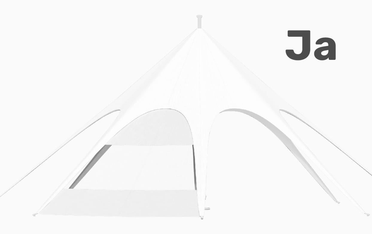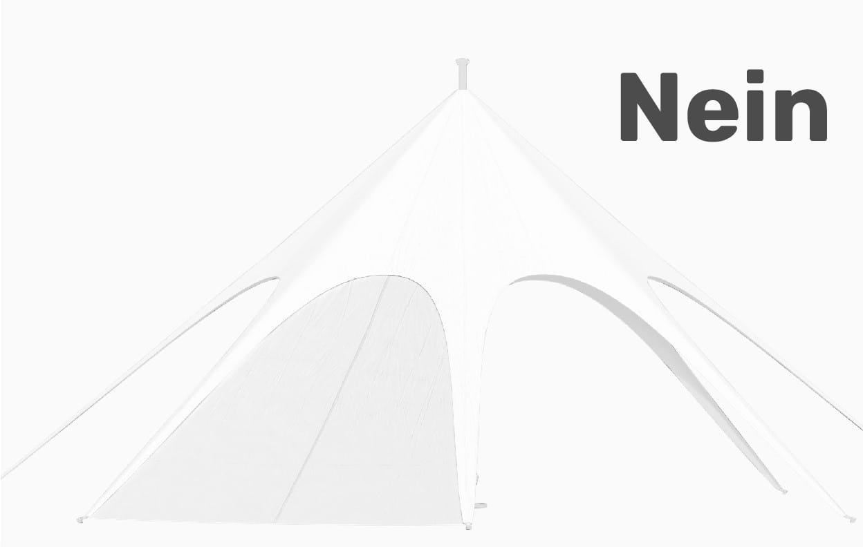 Alle Größen und Formen unserer JH STATIC Sternzelte halten dank ihrer Form standardmäßig Windstärken von bis zu 50 km/h stand. Sollten Sie Ihr Eventzelt auch für stärkere Windstärken wappnen wollen, gibt es optional in unserem Zubehör ein Sicherheitsset, das die Sternenzelte bis zu 100 km/h absichert.