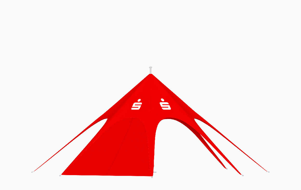 Das individuell bedruckbare Sternzelt JH STATIC mit Dach aus Polyester oder Polyester mit PVC-Beschichtung ist das perfekte Eventzelt für anspruchsvolle Einsätze. Bekannt wurden die Sternzelte durch Red Bull, die als eine der ersten bei ihren coolen Events die Kunden in einem solchen Veranstaltungszelt empfingen. Daher ist es auch unter dem Namen "Red-Bull-Zelt" bekannt. Vor allem für Fernseh-Teams und Fotografen sind diese Zelte ein gern verwendetes Motiv - bei Nacht geradezu unschlagbar! Denn beleuchtet sieht das Zelt tatsächlich aus wie ein leuchtender Stern.