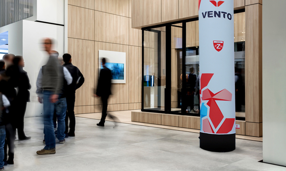 Aufblasbare bedruckte Werbesäulen der Vento-Linie benötigen kein Dauergebläse und stehen, einmal aufgeblasen, ohne Druckverlust so lange sie benötigt werden. Sogar unter Extrembedingungen, riesigen Temperaturunterschieden, bei einem Lauf in der Wüste zeigten sie tagsüber in der Hitze und in der Kälte nachts perfekt die Werbebotschaft.