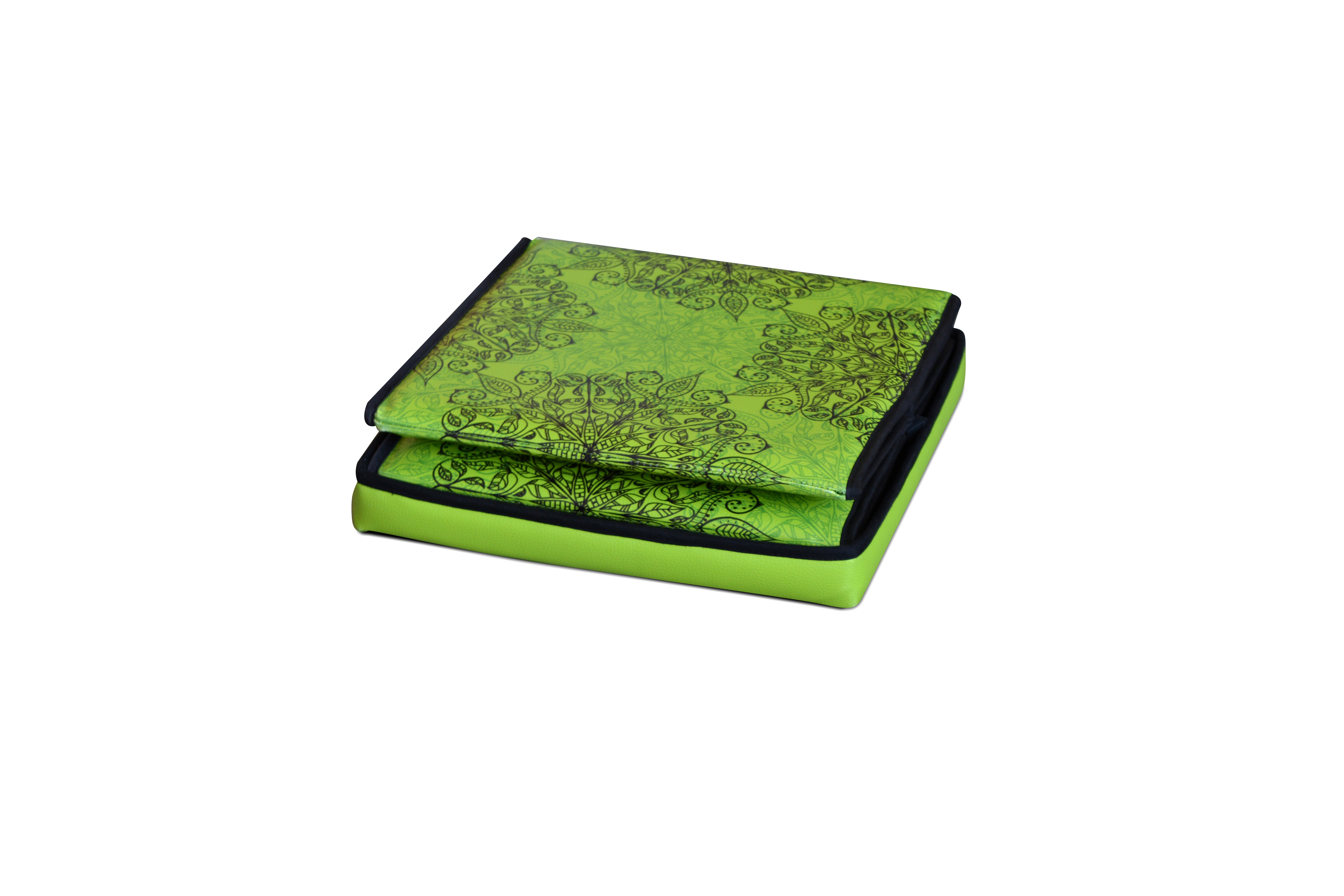Der Sitzwürfel Origami ist jedoch mehr als nur ein Sitzwürfel. Er kann gleichzeitig auch als Aufbewahrungsbox genutzt werden und bietet somit Stauraum, um zum Beispiel die Utensilien für eine Messe ordentlich zu verstauen.